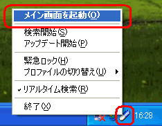 タスクバーに表示されているセキュルティ対策ツールのアイコンを右クリックして、
